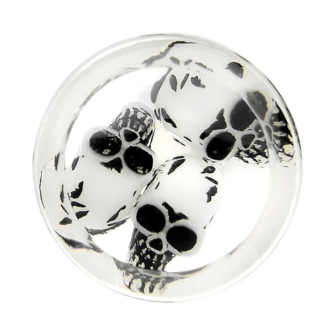 Hypoallergenic jewelry for sensitive skin.Sold individually, purchase 2 for a pair. Enjoy a scare every day with these creepy grinning skeleton 8mm ear expanders. Clear acrylic saddle plug ear stretcher Body Jewelry./font>