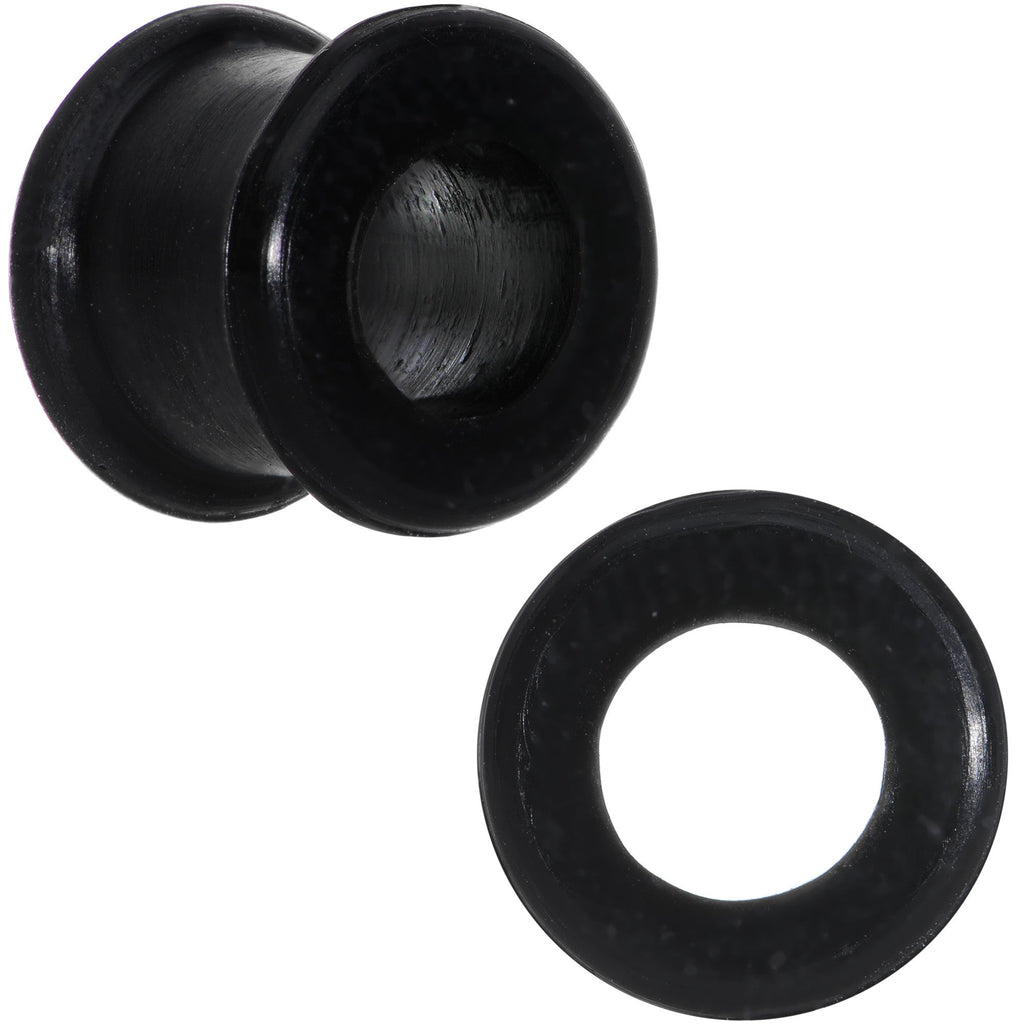 Add a little sleek and simple style to your lobes when you wear this pair of tunnel plugs. Made with flexible black silicone, these 10mm ear gauges are made with a double flare design for secure wear, are great for newly stretched piercings, and are sold as a set of two.