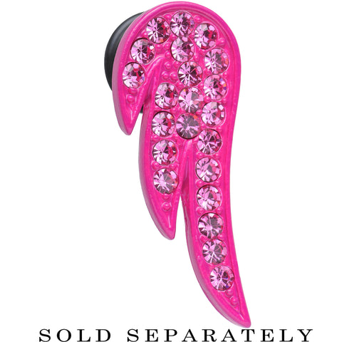 Item sold individually, purchase two for a pair. Never leave your guardian angel far behind with this 10mm pink enamel angel wing stainless steel plug. The heavenly single flare ear stretcher features a solitary bright pink wing studded with twinkling pink gems. Pierced ear expander ear gauge tunnel plug includes one rubber O-ring.