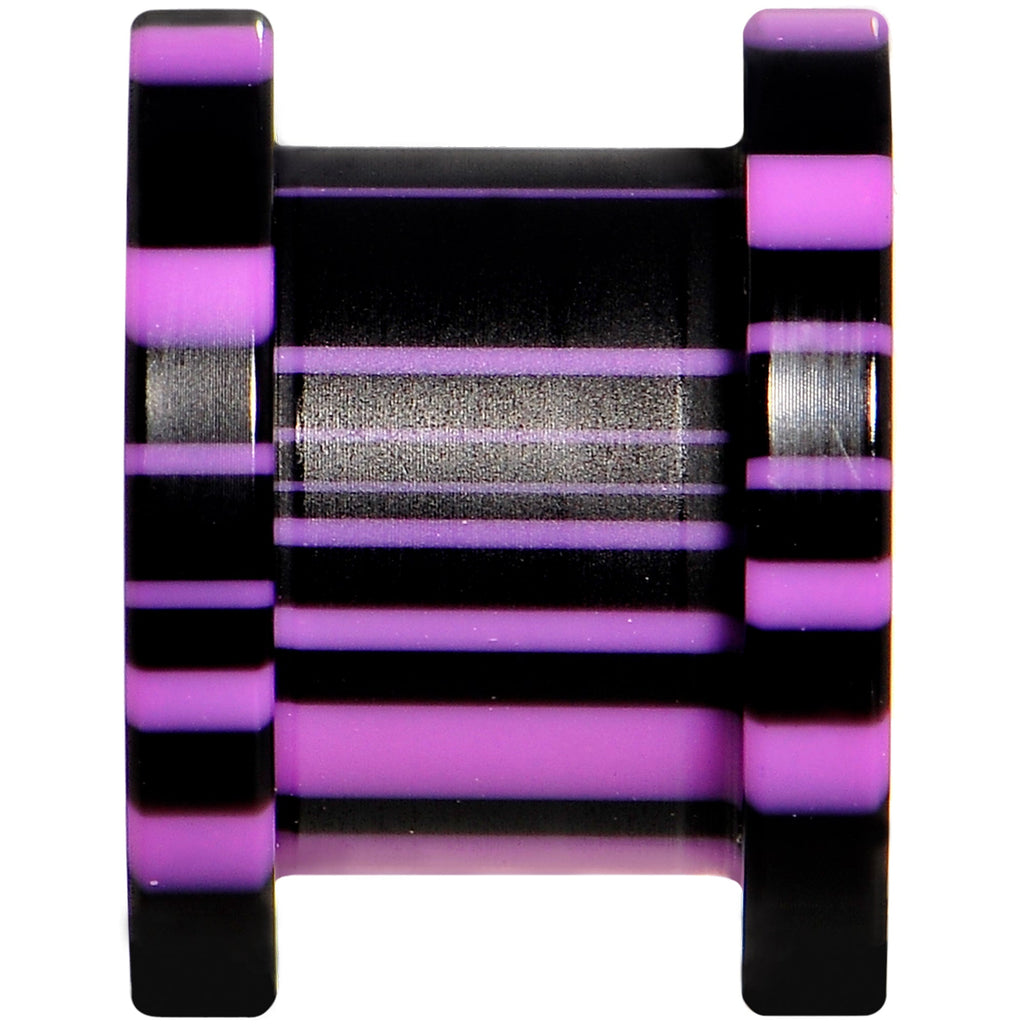 Hypoallergenic jewelry for sensitive skin.If you love animal print then these ear plugs are perfect for you! Made with lightweight black and purple acrylic, these 10mm ear gauges feature a zebra stripe print, are made with a screw fit design for easier insertion and removal, and feature a tunnel style that can be worn alone or with tunnel plug earrings. Sold as a set of two.