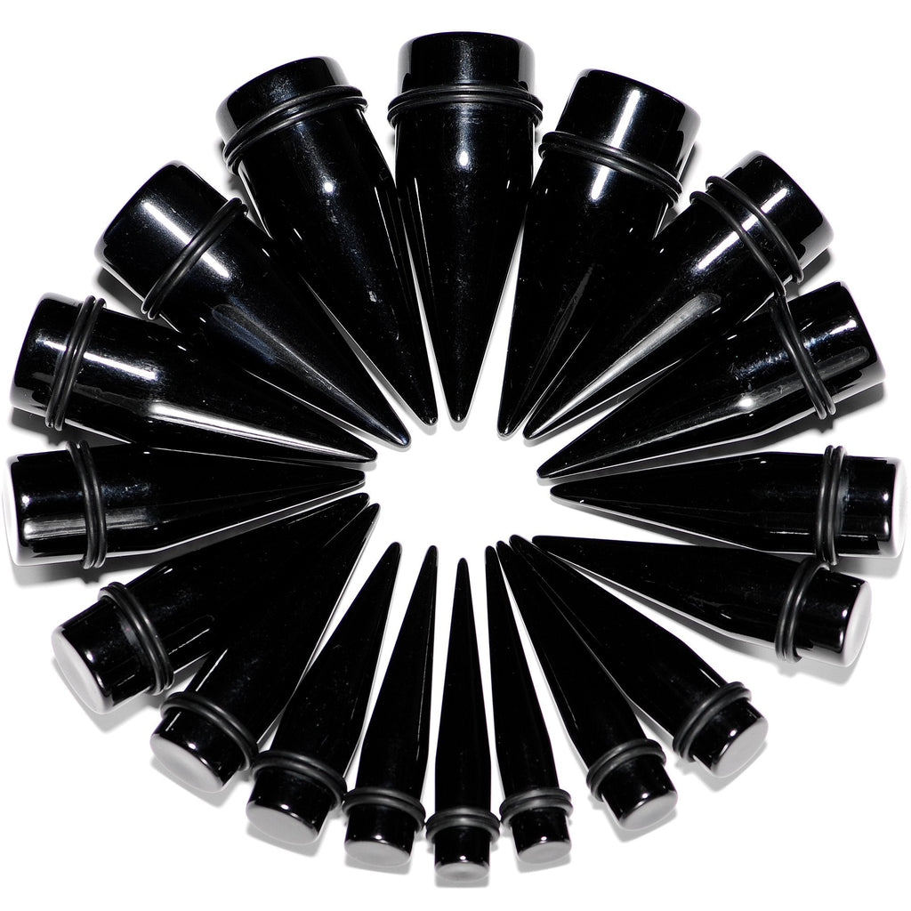 00 Gauge to 1" 18 Piece Black Acrylic Ear Stretching Taper Kit