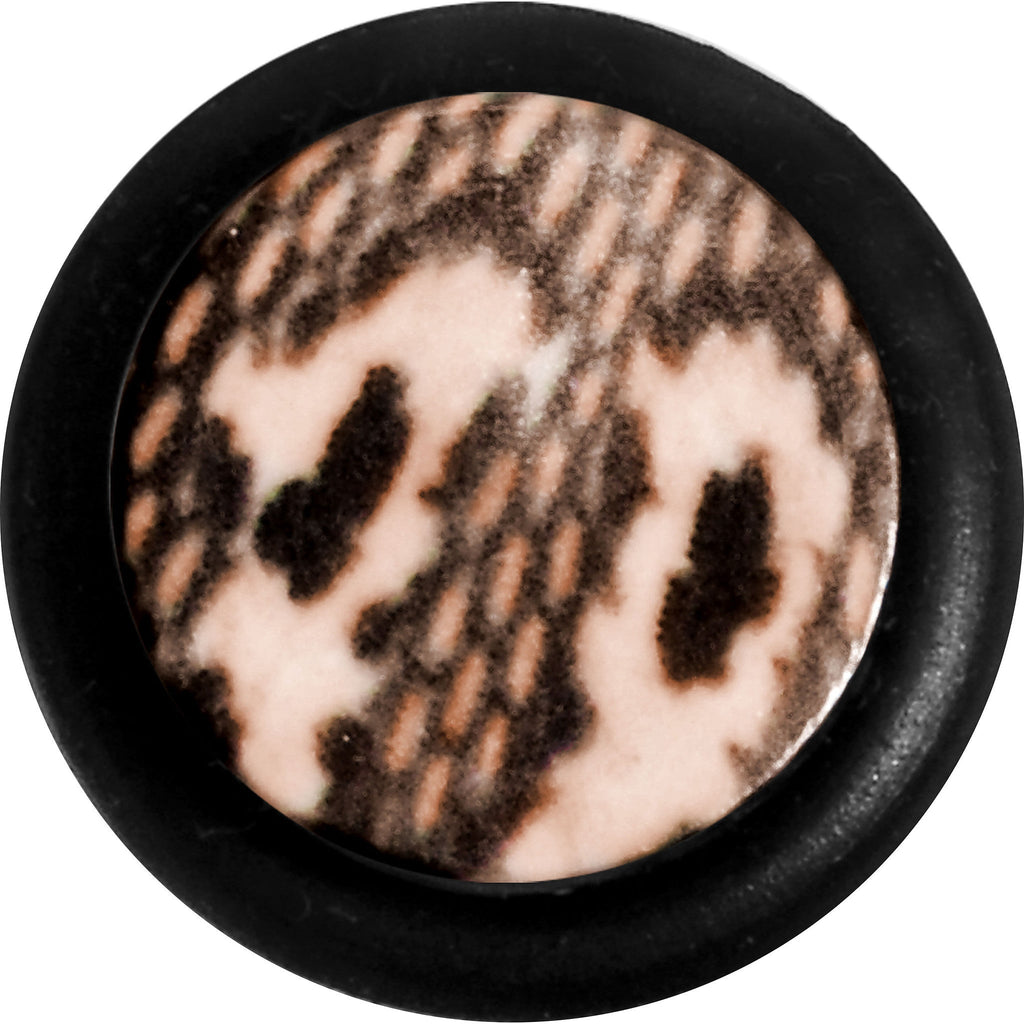Taper plug sold individually, purchase a quantity of 2 for a pair. Acrylic body jewelry ear taper with a snake skin design. 8mm taper expander with slithering style.