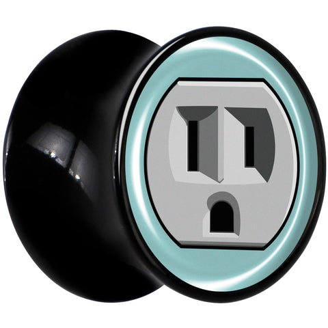 If you're not feeling plugged in and you're ready to power down, let the world know with these 8mm saddle plugs for stretched lobes. They're made with black acrylic and feature a saddle design for comfortable insertion and removal. Each one features a grey electrical outlet on a blue background. The sockets in the outlet appear to be making a frowny face for days when your power is low. Feel the frown on these charming ear gauges. Sold as a set of two.