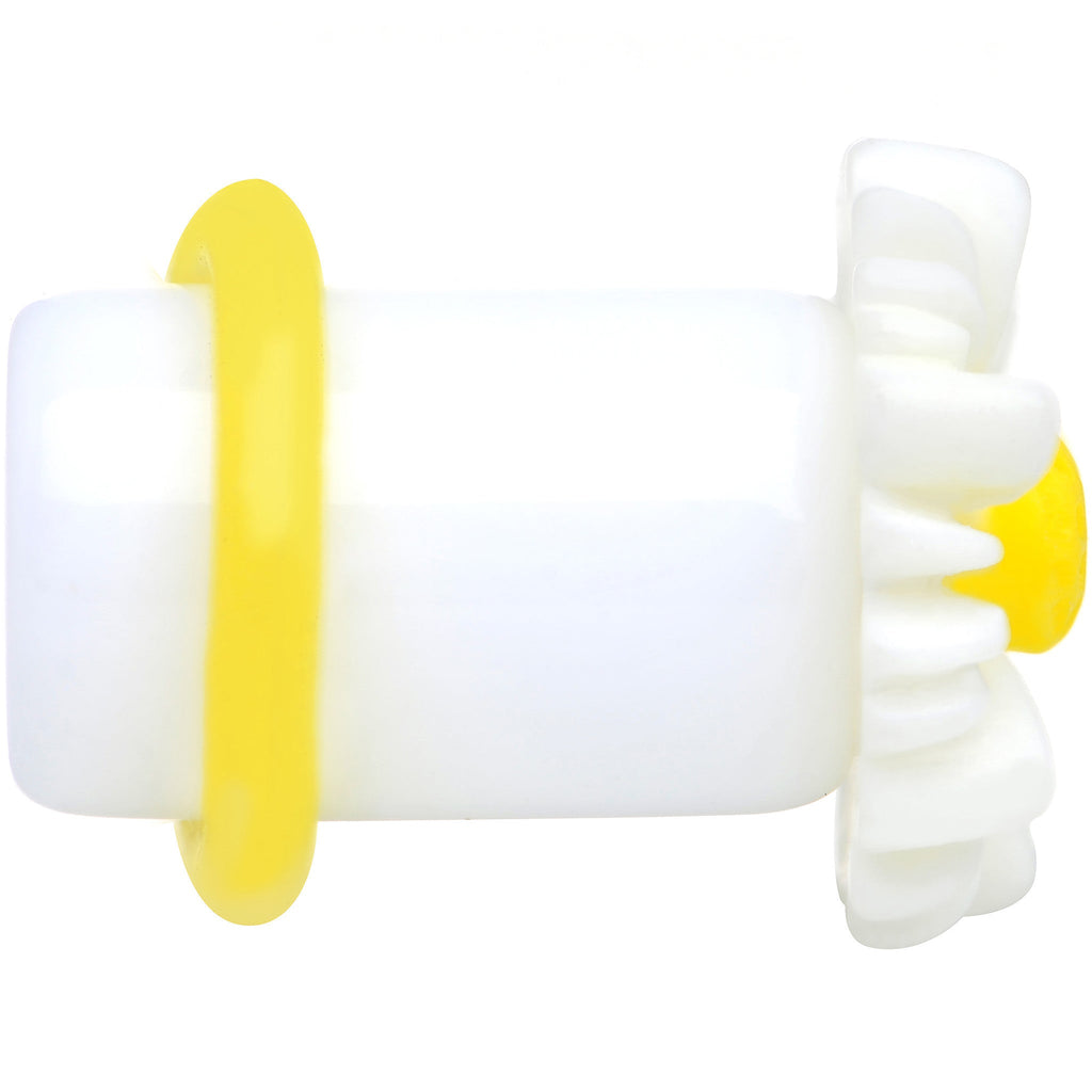 Hypoallergenic jewelry for sensitive skin.Sold individually, purchase 2 for a pair. This cheerful 8mm ear expander lets you bring joy wherever you go, thanks to its pretty pastel white daisy. Flower themed white and pink acrylic single flare plug ear stretcher body jewelry comes with one rubber O-ring.