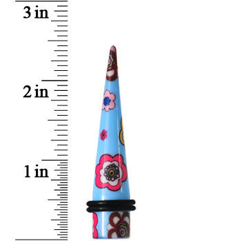 Hypoallergenic jewelry for sensitive skin.Sold individually, Please purchase a quantity of 2 for a pair. 12mm taper ear plug. Blue acrylic straight taper with multi colored retro flowers. Floral taper ear expander.