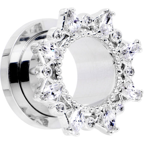 1/2 Clear Gem Flower Frame Screw Fit Tunnel Plug Set