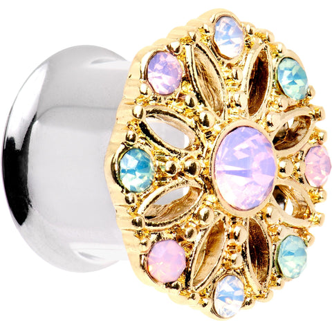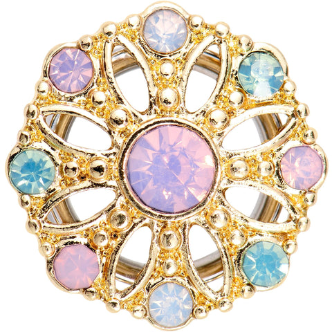 1/2" Pink Green White Gem Glam Flower Double Flare Tunnel Plug Set