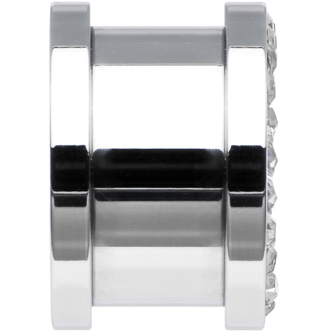 Hypoallergenic jewelry for sensitive skinAnchor your stretched lobes with this screw fit tunnel plug. This 316L surgical grade stainless steel ear plug features a glittering anchor design within the body jewelry's tunneled structure surrounded by a circle of clear sparkling accents. This 1/2" tunnel is sold individually, so please make sure to select a quantity of two (2) when ordering if you desire a pair.