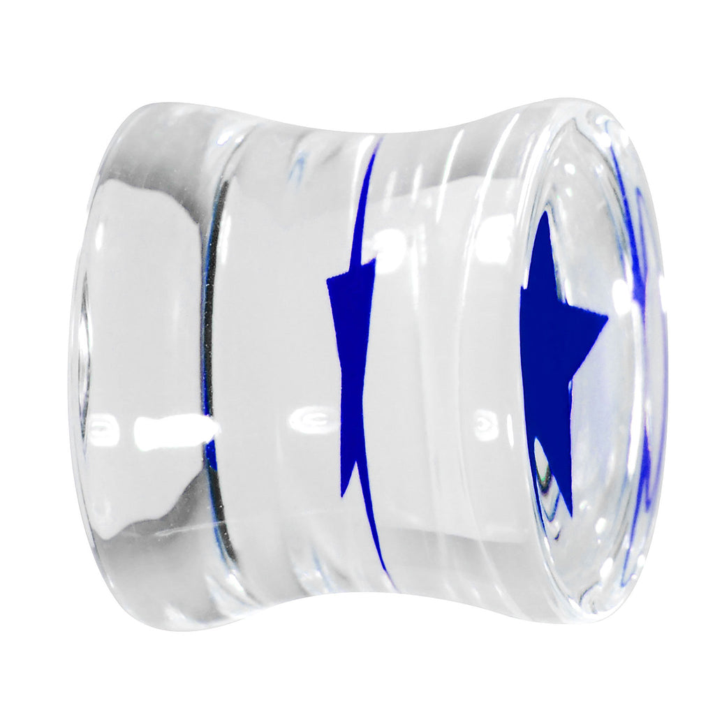 Hypoallergenic jewelry for sensitive skin.Sold Individually, Please purchase a quantity of 2 for a pair. 12mm acrylic plug Body Jewelry.Look stellar with this fashionable star ear plug. Clear acrylic plug with blue star inlay.