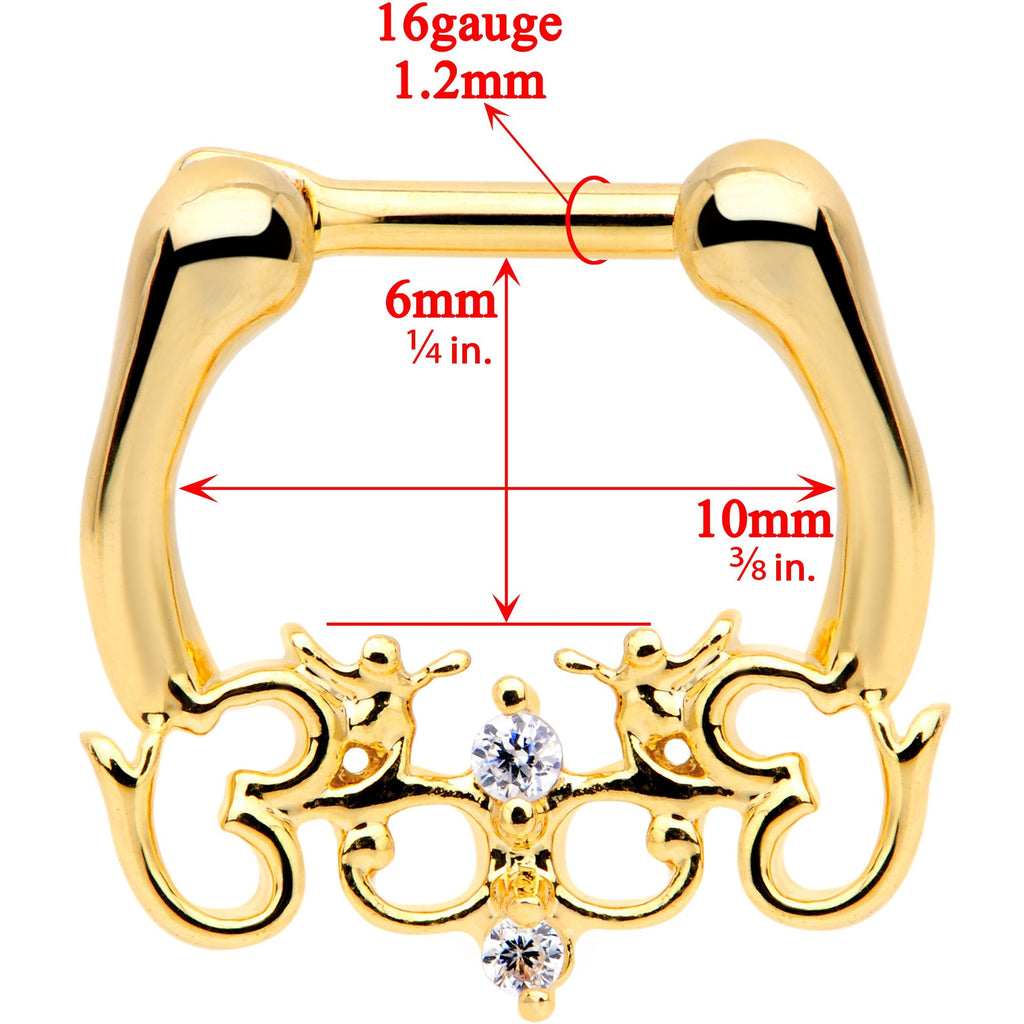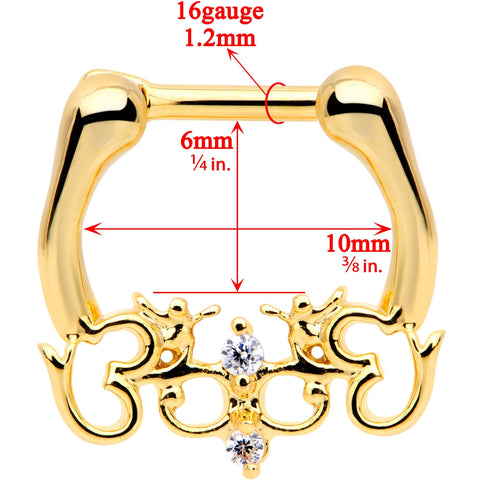 1/4 Clear CZ Gem Gold Tone Anodized Angel Swirl Nipple Clicker Set