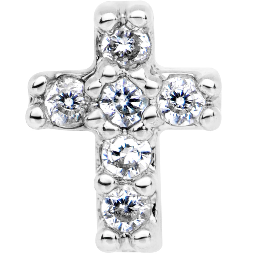 If you love bold beauty and simple style then you will love to wear this pretty 16 gauge labret piercing. Made with a 6mm internally threaded 316L surgical grade stainless steel straight barbell, this flatback labret piercing features a cross charm decorated with a cluster of clear cubic zirconia gems. Works in a variety of piercings including labret, monroe, tragus, and other cartilage piercings.