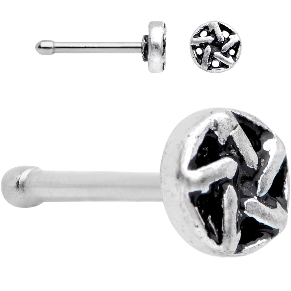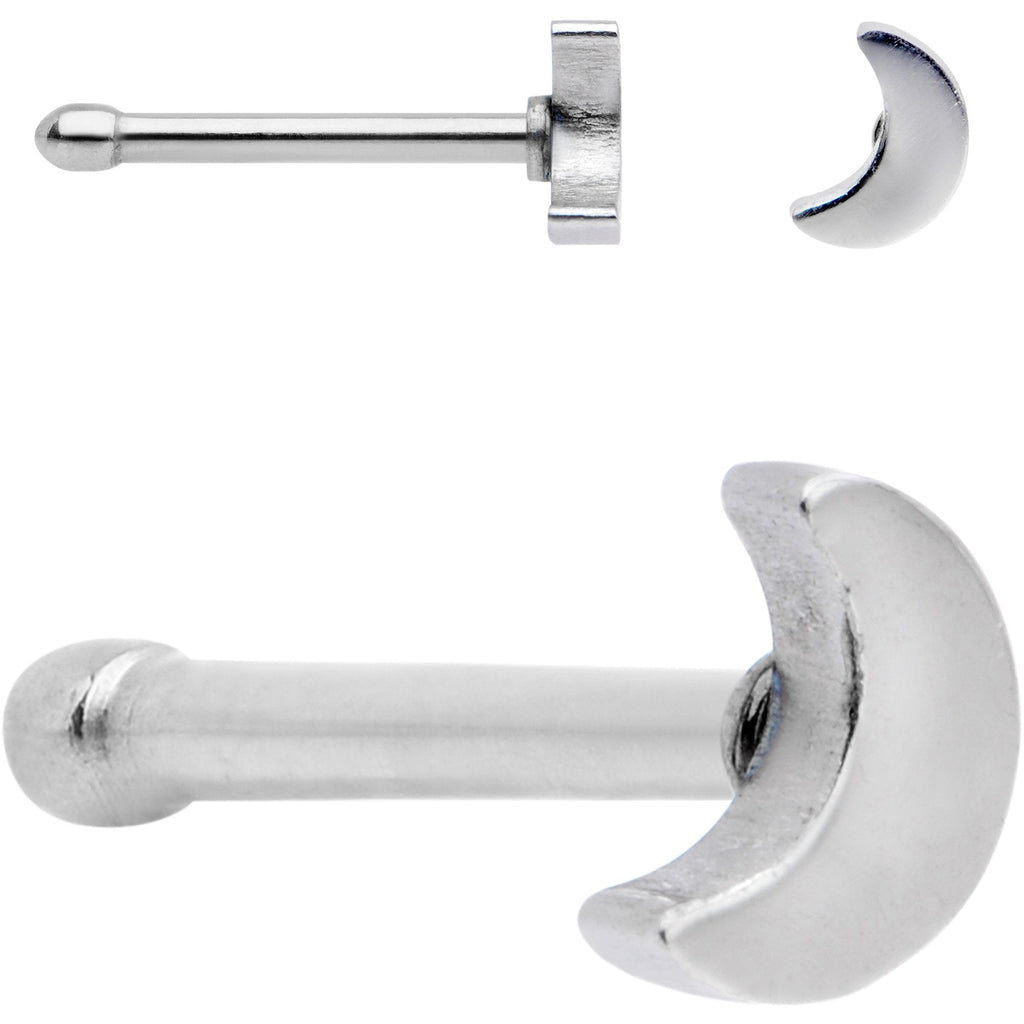 Make sure you have options for your pierced nose with this set of 6 nose rings in the nose bone design. These 20 gauge nostril rings have a length of 6mm and are made from durable 316L surgical grade stainless steel straight posts. Included in this package of 6 nostril rings are a nose piercing with a star knot top, two crescent moon charms, a white faux opal press-fit end, a clear gem press-fit end, and a plain ball end. These nose bone piercings are sold as a set of six.Specifications