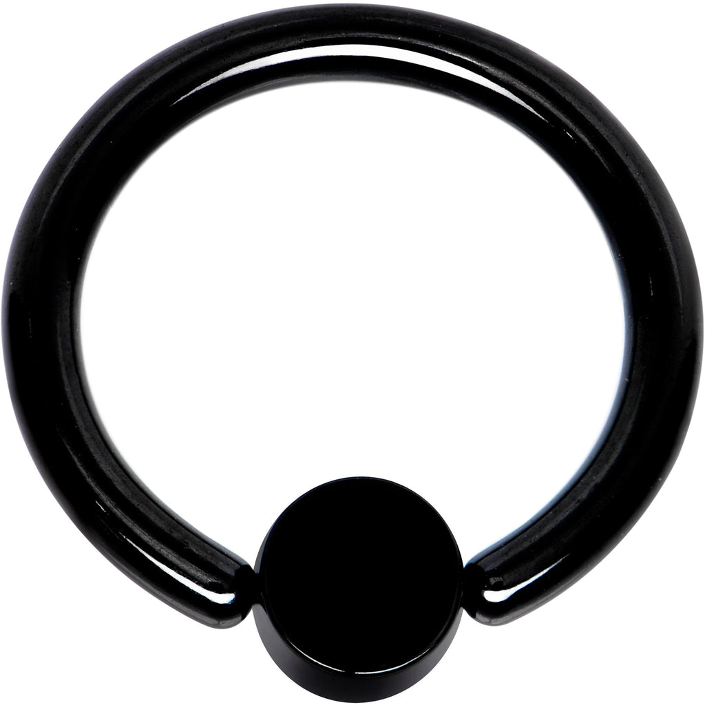 If you love basic jewelry with a touch of glam then this pretty 12 gauge captive bead ring is just right for you. Made with a 12mm circumference black IP over 316L surgical grade stainless steel circular ring, this BCR captive disc earring features a 5mm flat captive disc set with a clear gem inlay and is perfect for cartilage and ear piercings as well as any other piercing where it is a perfect fit for you!