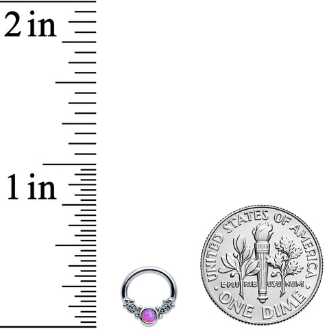 14 16 Gauge 1/4 5/16 Pink Synthetic Opal Ornate Captive Ring Set of 4