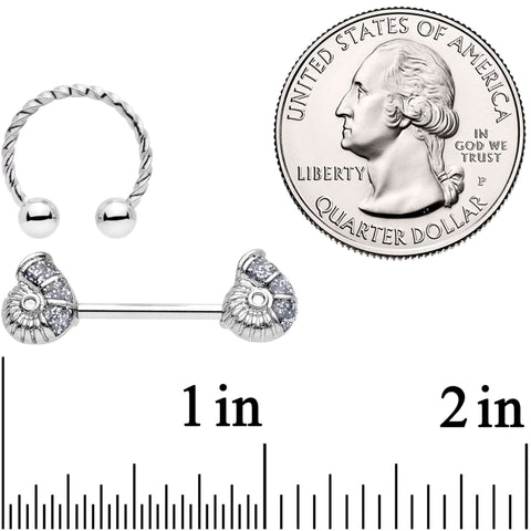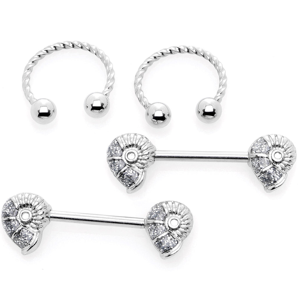 14 Gauge 1/2" 9/16" Seashell Twisted Horseshoe Nipple Jewelry Set
