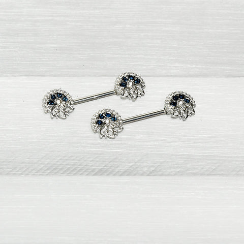14 Gauge 1/2 Blue Clear Gem Abstract Arch Barbell Nipple Ring Set
