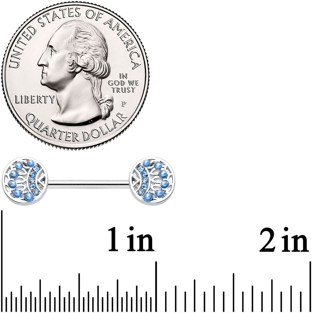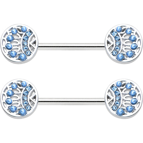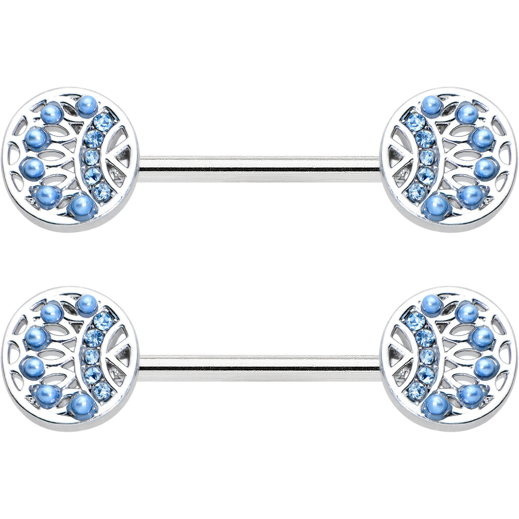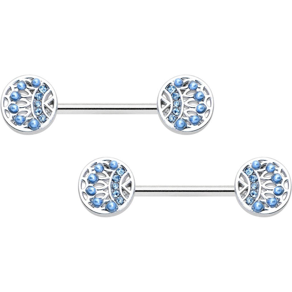 14 Gauge 1/2 Blue Gem Geometric Blues Barbell Nipple Ring Set