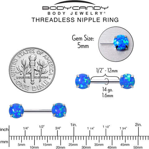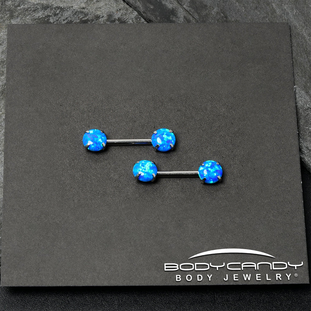 14 Gauge 1/2 Blue Synthetic Opal Threadless Barbell Nipple Ring Set