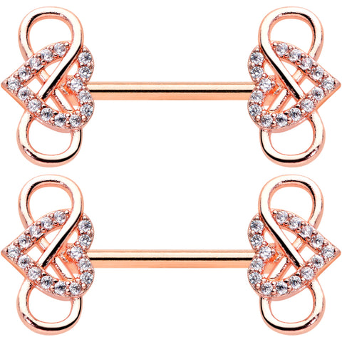 14 Gauge 1/2 Clear CZ Gem Rose Gold Hue Infinity Heart Nipple Ring Set