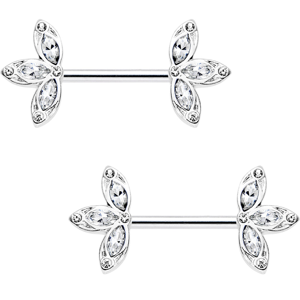 14 Gauge 1/2" Clear Gem Fleur de Seins Barbell Nipple Ring Set