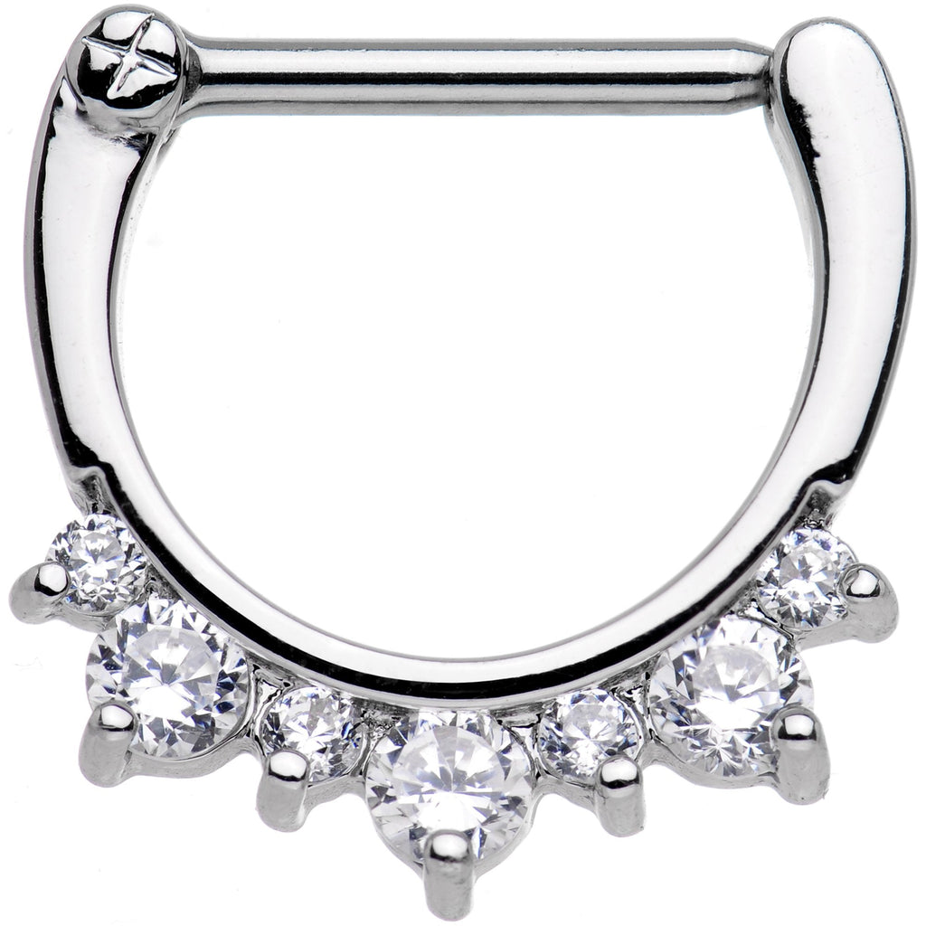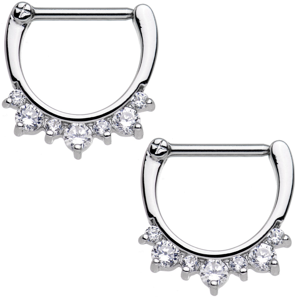 ,14 Gauge 1/2" Clear Gem Septet Nipple Clicker Set