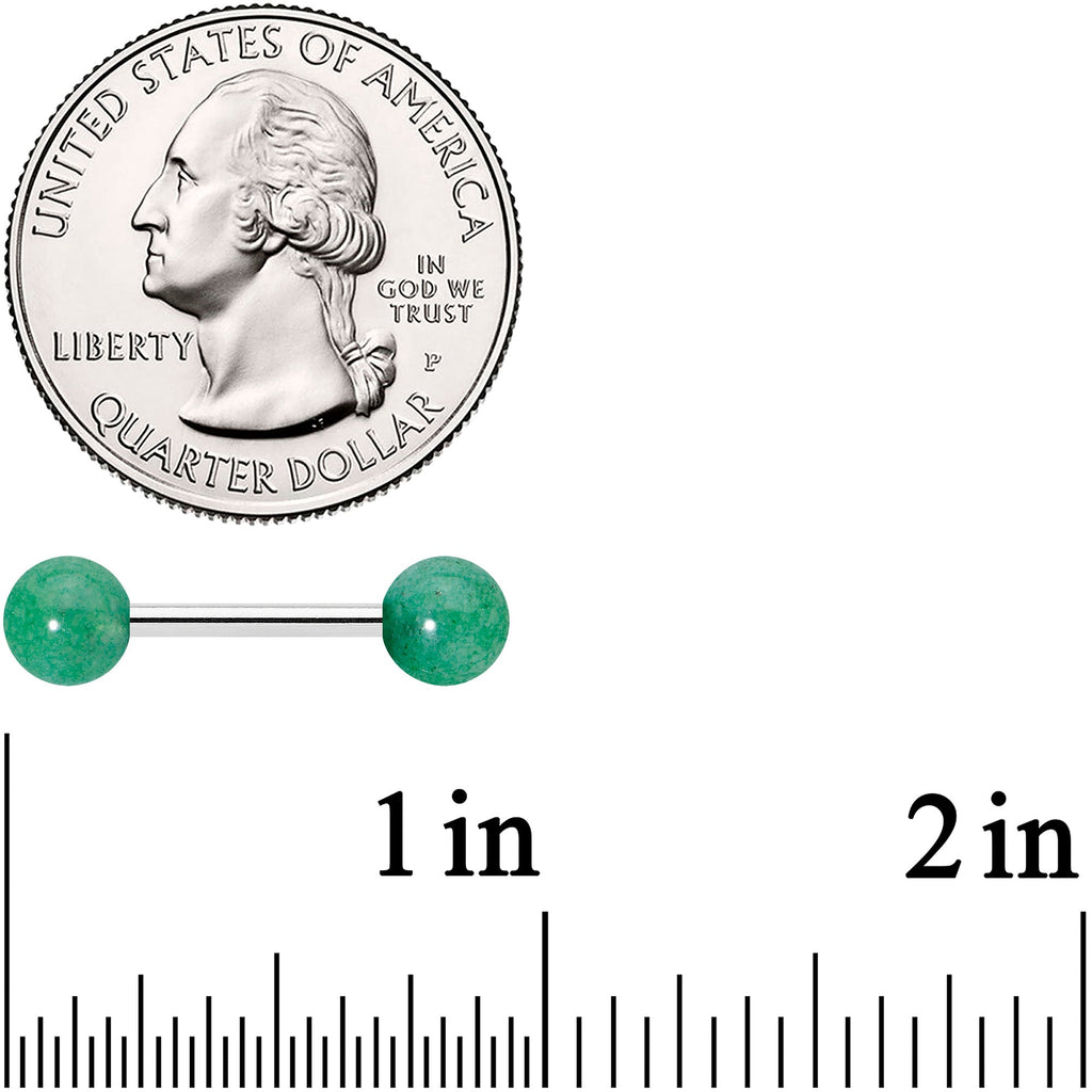 14 Gauge 1/2 Elegant Green Jade Barbell Nipple Ring Set