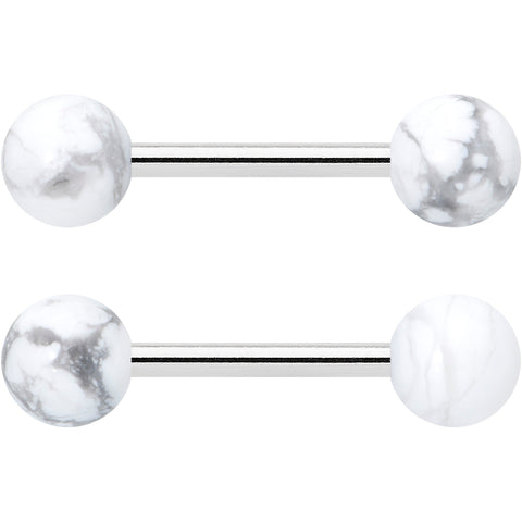 14G 1/2 Elegant White Howlite Barbell Nipple Ring Set