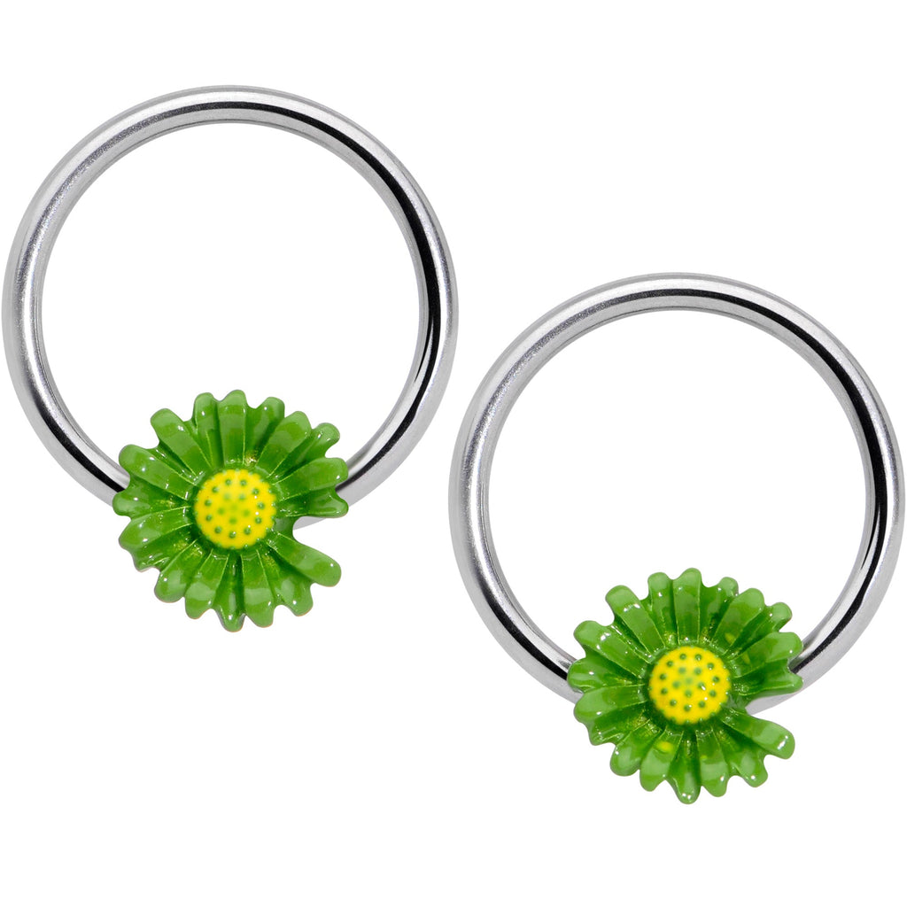 14G 1/2 Green Daisy BCR Captive Nipple Ring Set