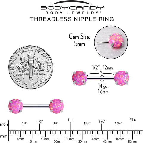 14 Gauge 1/2 Pink Synthetic Opal Threadless Barbell Nipple Ring Set
