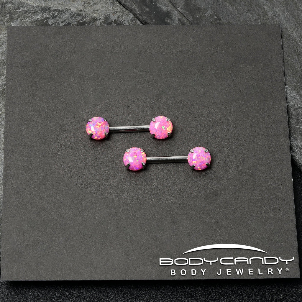 14G 1/2 Pink Synthetic Opal Threadless Barbell Nipple Ring Set