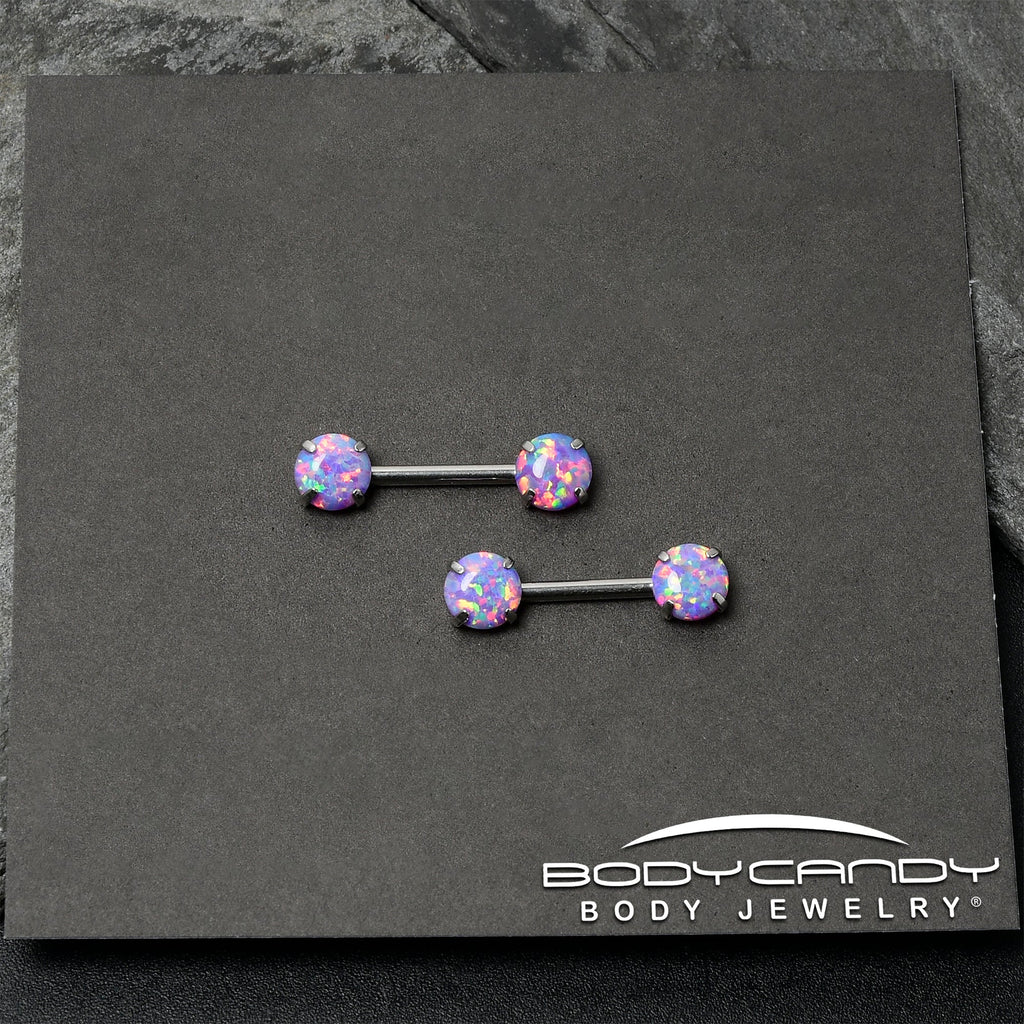14 Gauge 1/2 Purple Synthetic Opal Threadless Barbell Nipple Ring Set