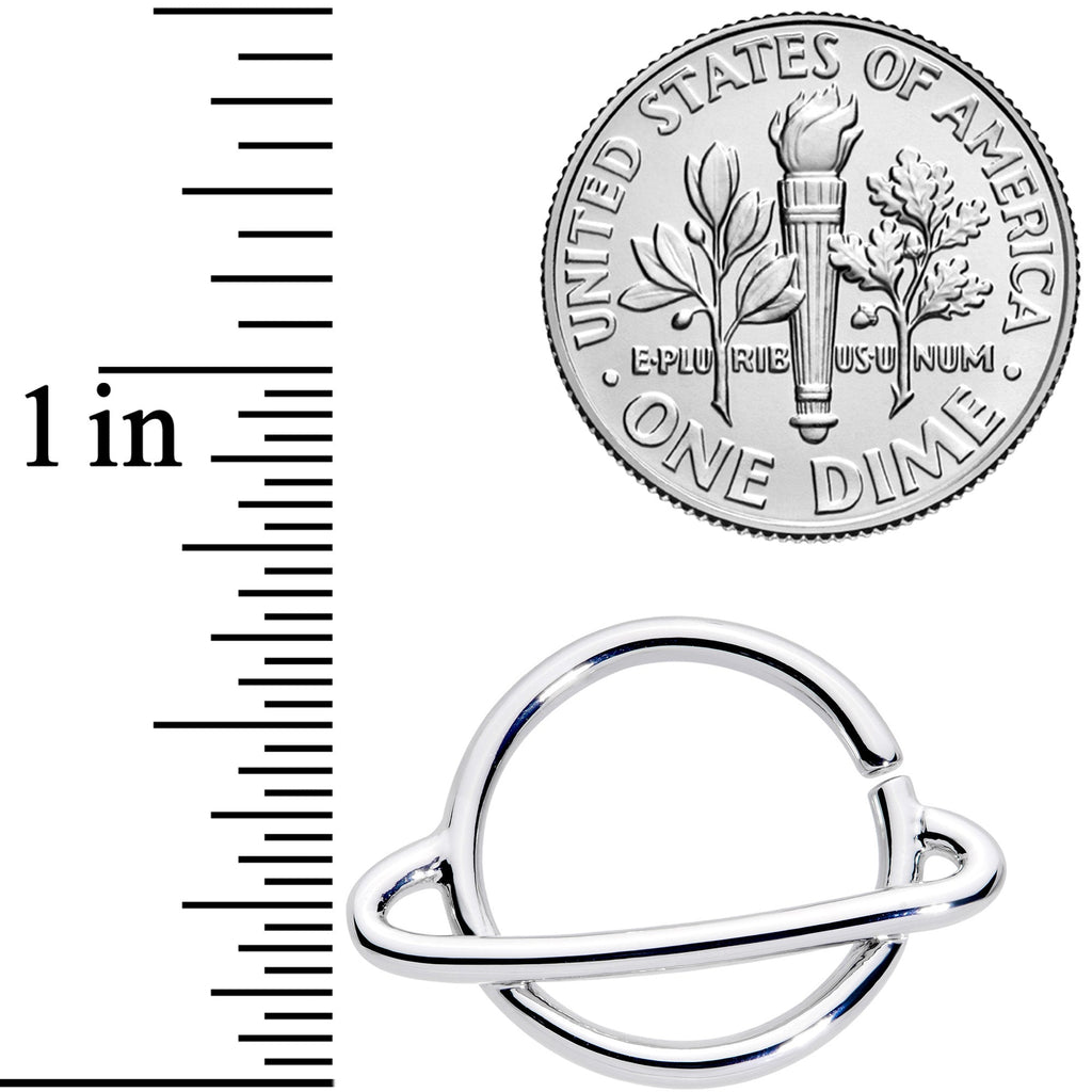 Finish your look with something stellar when you wear this 14 gauge planet nipple jewelry. Made with rhodium plated over brass, these 12mm nipple piercings are made in the shape of Saturn, the sixth planet from the Sun, and its famous rings. This nipple jewelry features ends that can be twisted open and then twisted shut again to easily to fit into your nipple piercing for easy insertion and removal. These closure rings can also be worn in some cartilage piercings like the helix. Sold as a set of two.Specifications