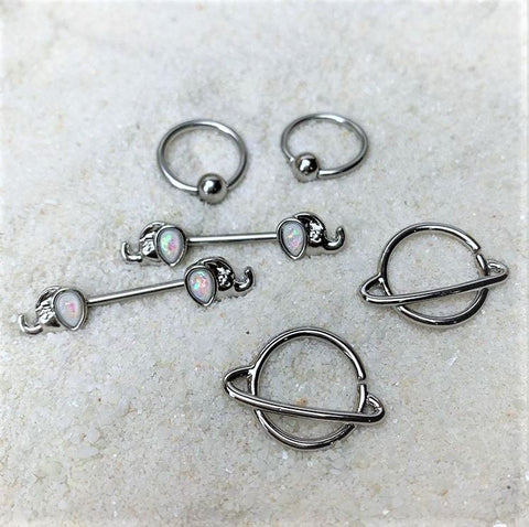 14 Gauge 1/2 Ring of Saturn Planet Nipple Ring Set