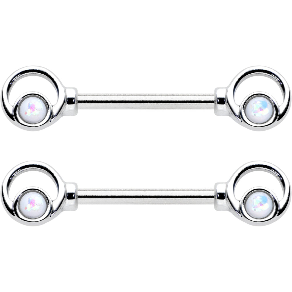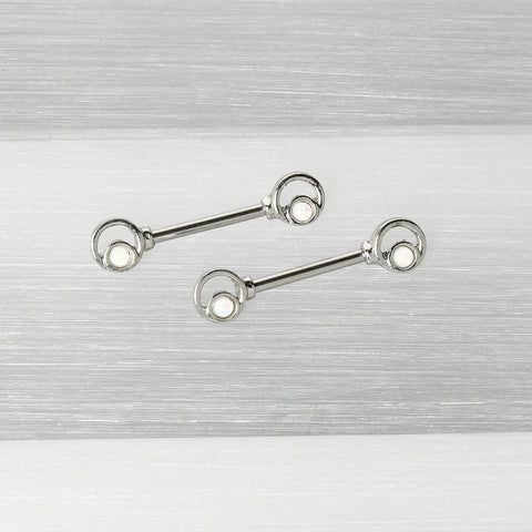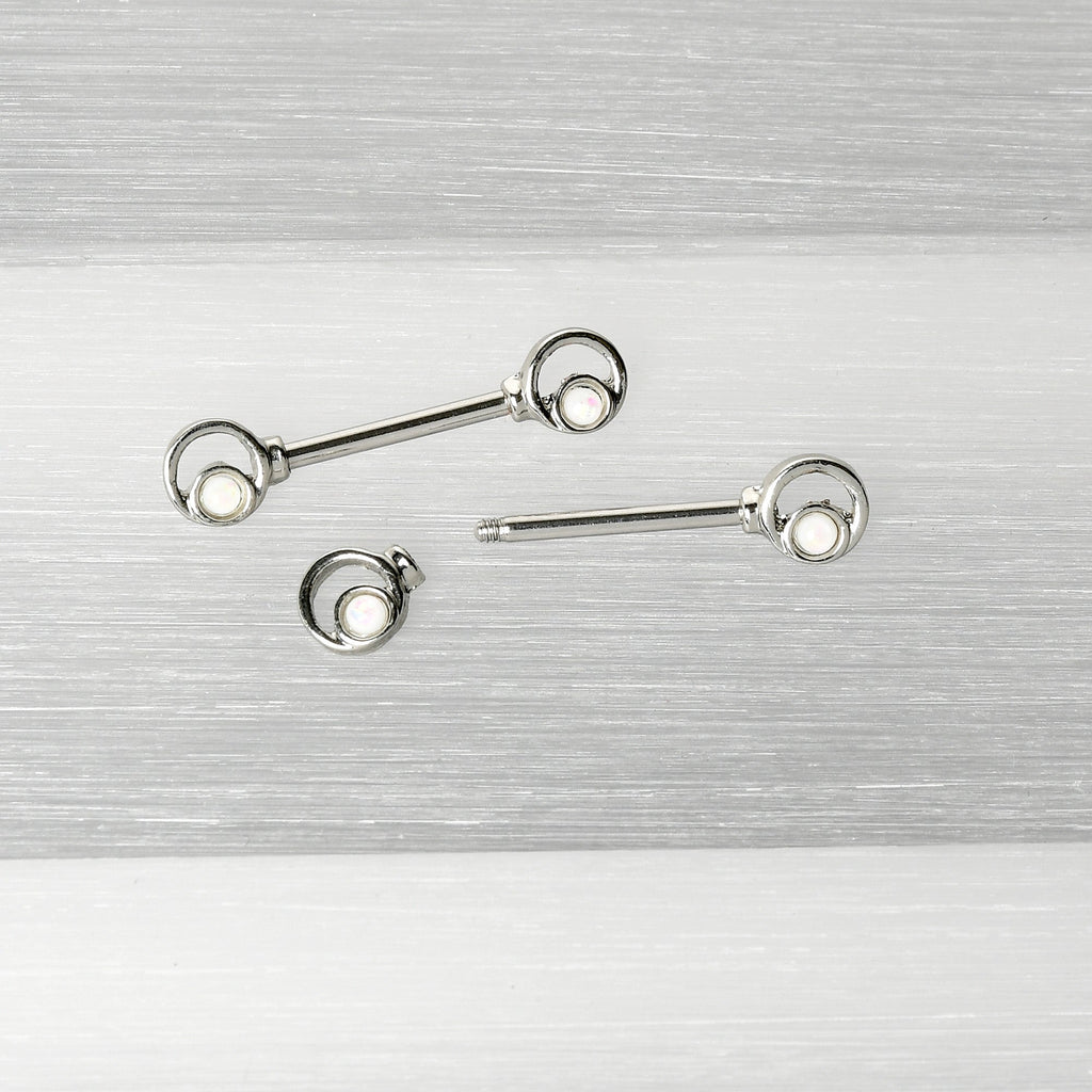 14G 1/2 White Faux Opal Double Circle Barbell Nipple Ring Set