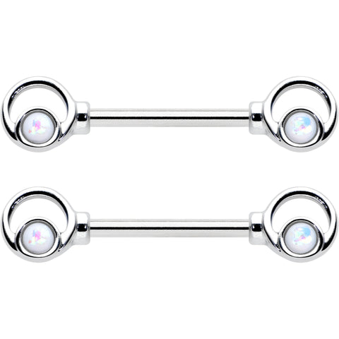 14 Gauge 1/2 White Faux Opal Double Circle Barbell Nipple Ring Set