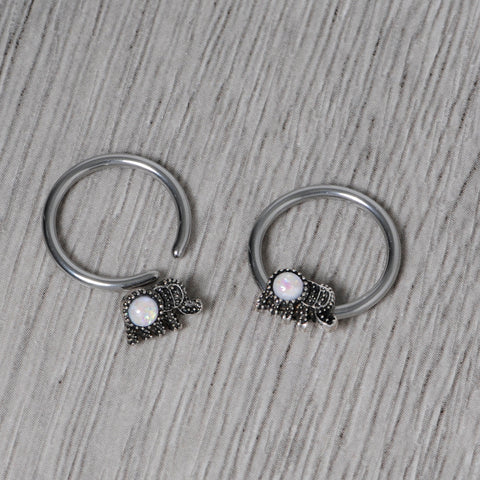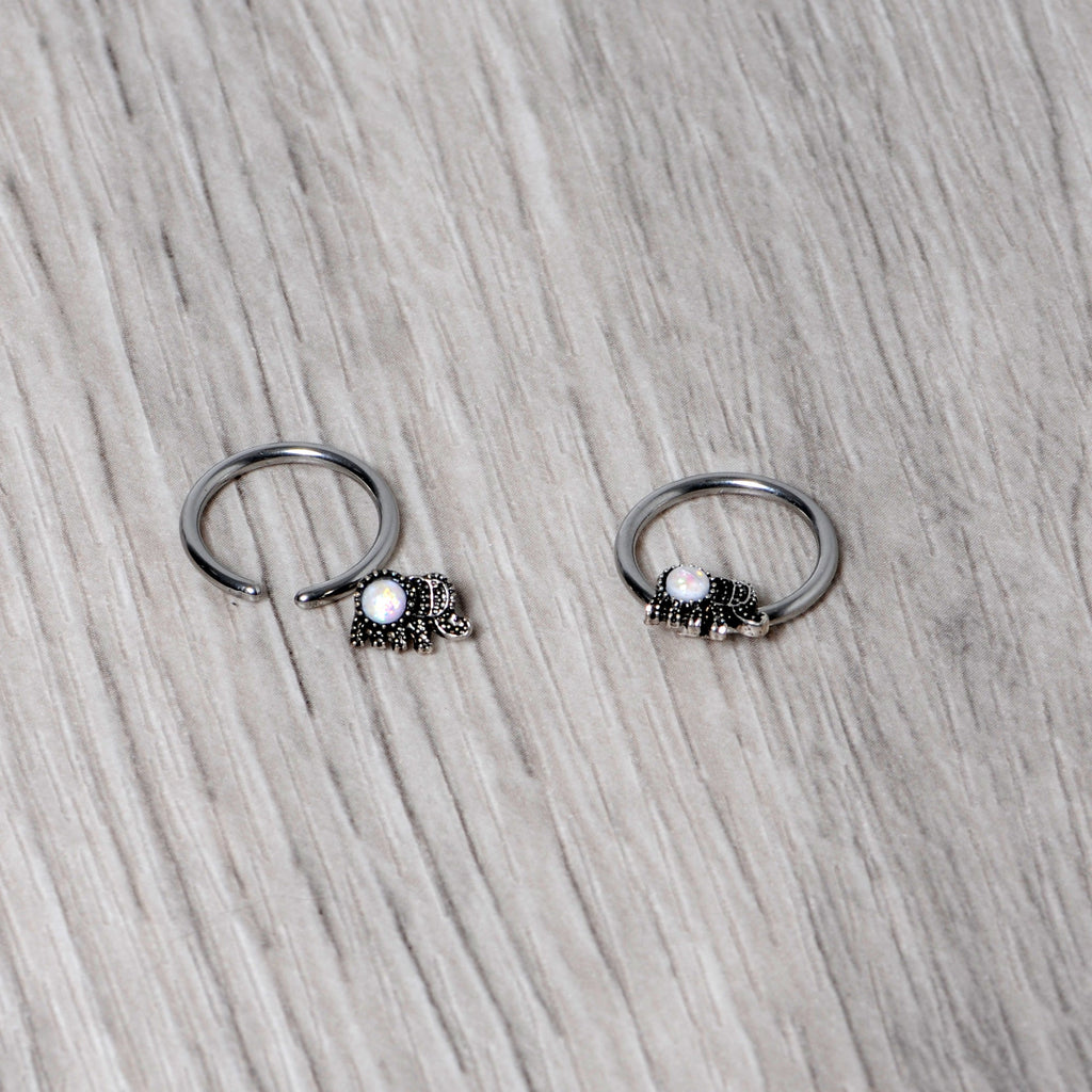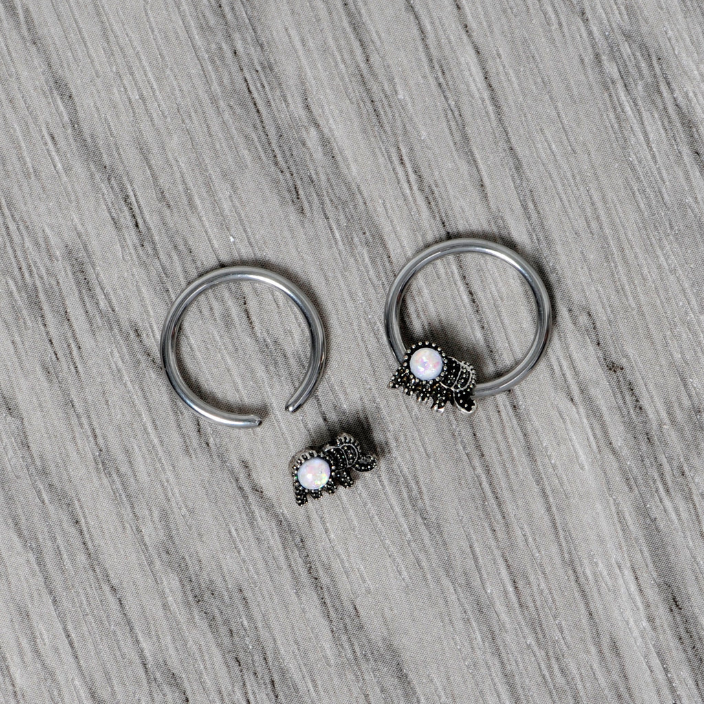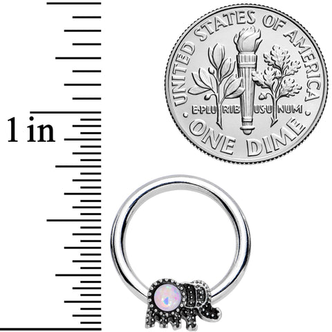 14 Gauge 1/2 White Faux Opal Elephant BCR Captive Nipple Ring Set