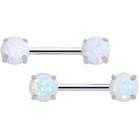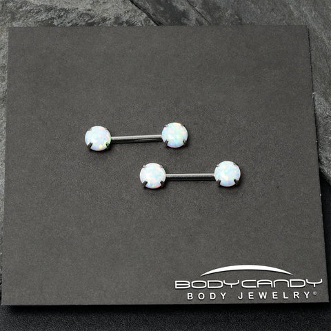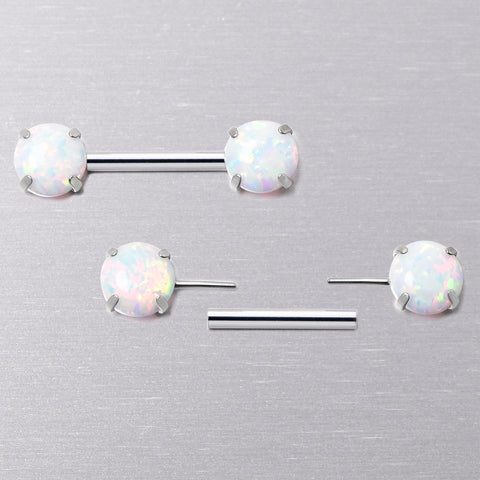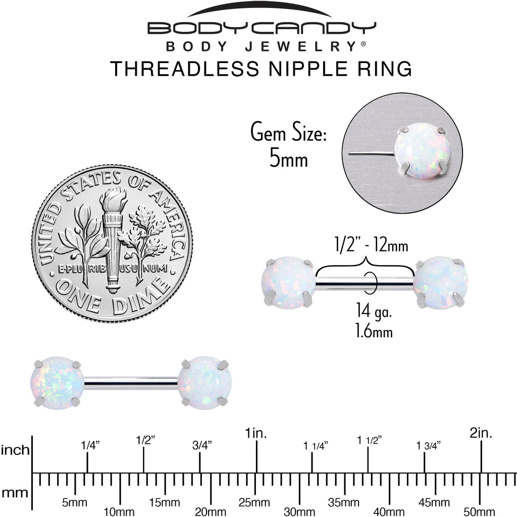 14 Gauge 1/2 White Synthetic Opal Threadless Barbell Nipple Ring Set