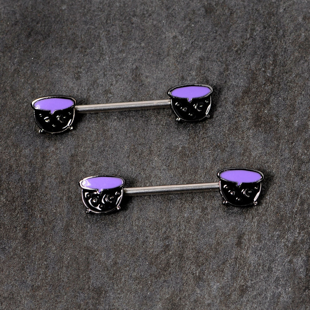 14 Gauge 11/16 Purple Cauldron Halloween Barbell Nipple Ring Set