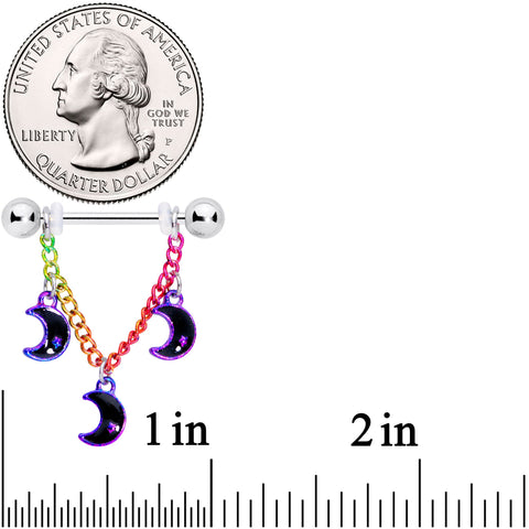 14 Gauge 11/16 Rainbow Triple Crescent Moon Dangle Nipple Ring Set