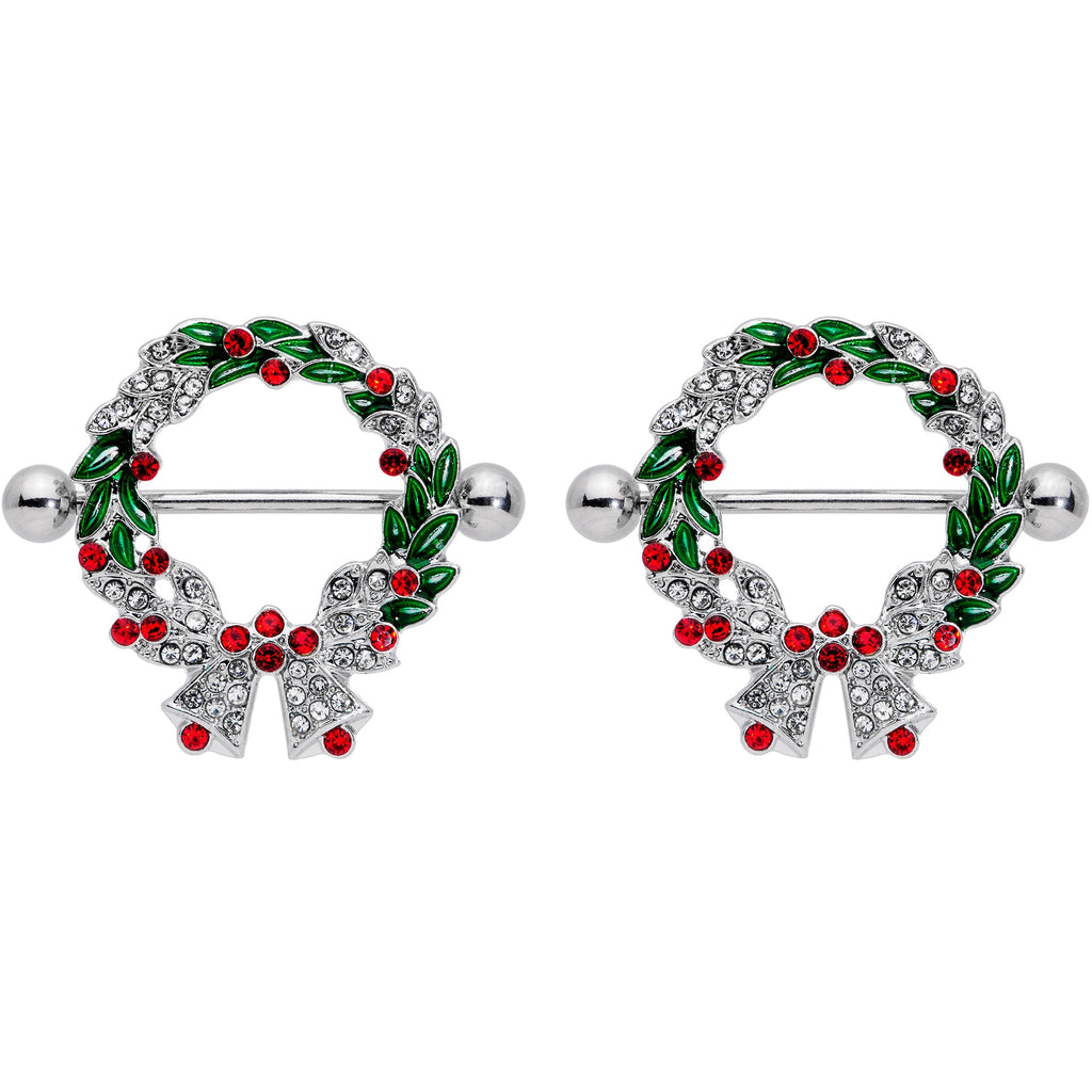 14G 11/16 Red Green Gem Christmas Wreath Nipple Shield Set