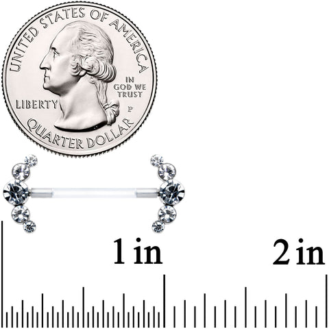Hypoallergenic jewelry for sensitive skin14 Gauge 13/16 Clear Gem Bioplast Simple Curve Barbell Nipple Ring Set
