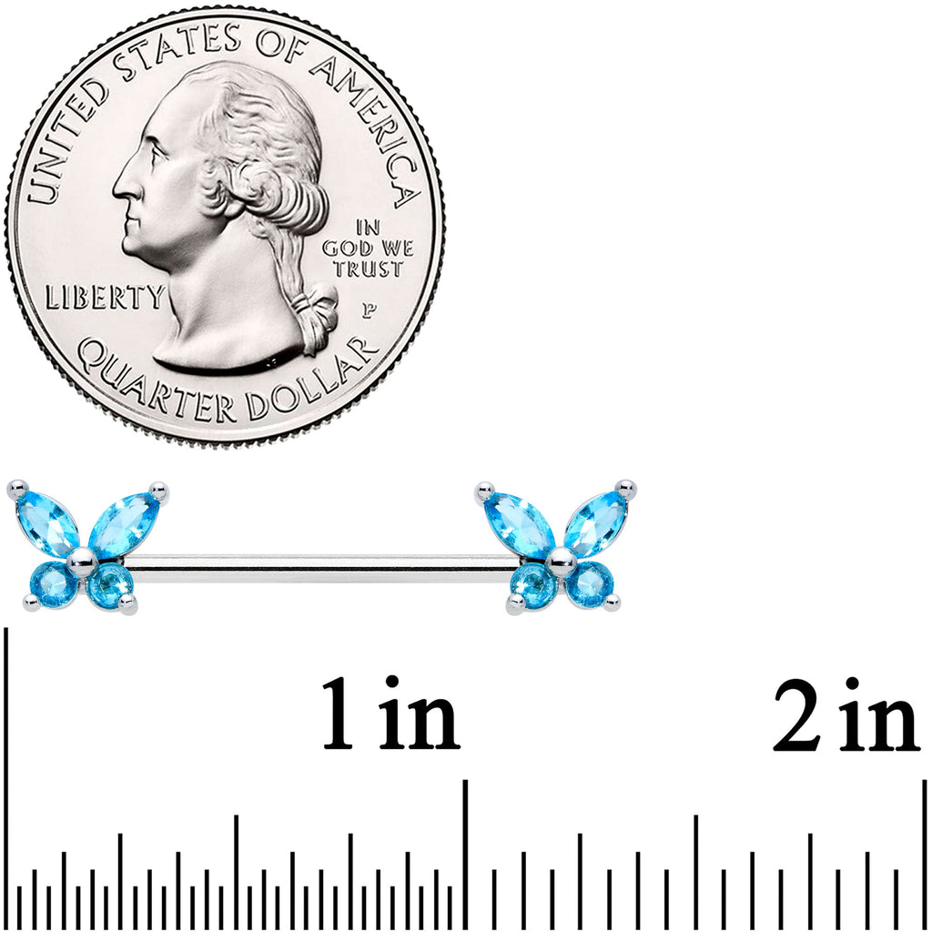 14 Gauge 3/4 Blue CZ Gem Butterflies Barbell Nipple Ring Set