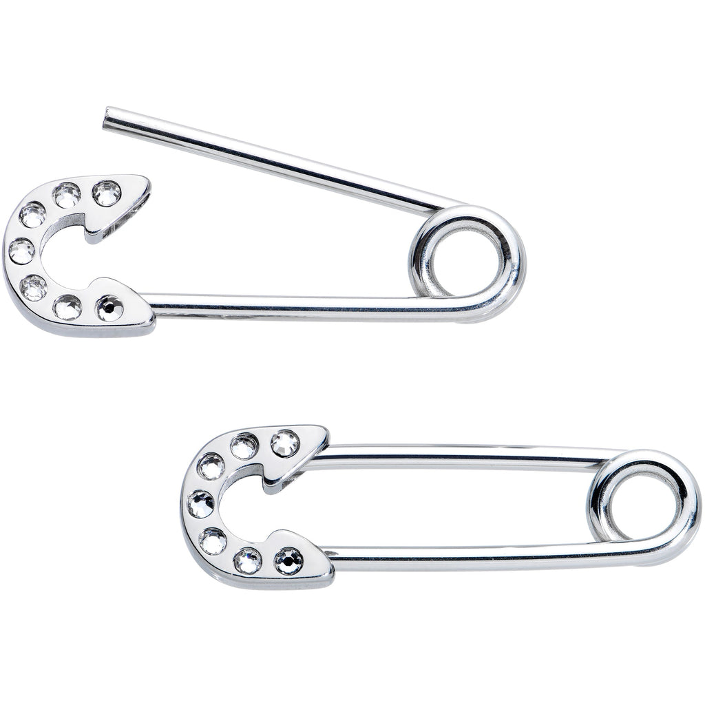 14G 3/4 Clear Gem Punk Rock Safety Pin Barbell Nipple Ring Set