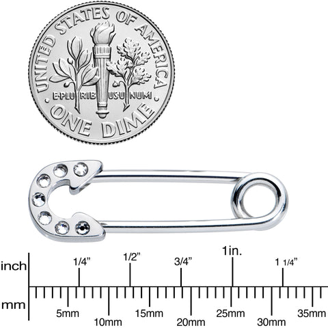 14 Gauge 3/4 Clear Gem Punk Rock Safety Pin Barbell Nipple Ring Set