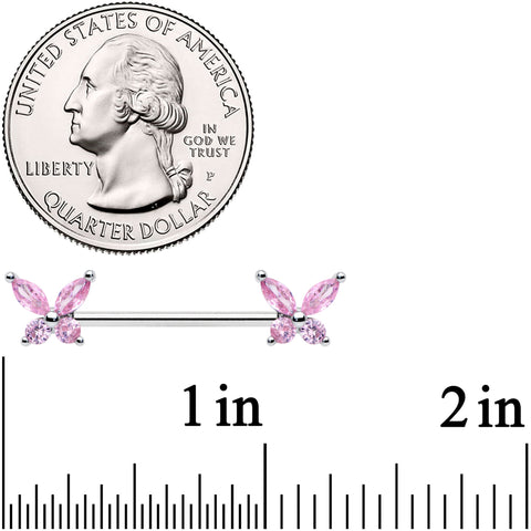 14 Gauge 3/4 Pink CZ Gem Butterflies Barbell Nipple Ring Set