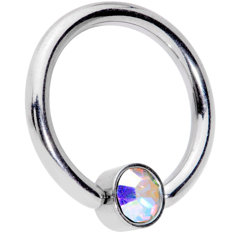 Every body jewelry wardrobe needs a few basic items that look great in multiple piercings. This 14 gauge ball closure ring is made with a 10mm durable 316L surgical grade stainless steel circular ring. It features a 4mm captive disc set with an aurora gem inlay for a look that is simple and classic. This universal ring works well in multiple piercings including cartilage piercings like the helix as well as your septum, lip, and navel. Cover your basics in style with this multi-purpose captive earring!Specifications
