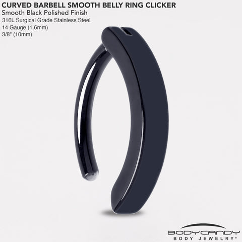 14G 3/8 Black 316L Surgical Steel Smooth Style Hinged Hoop Belly Ring