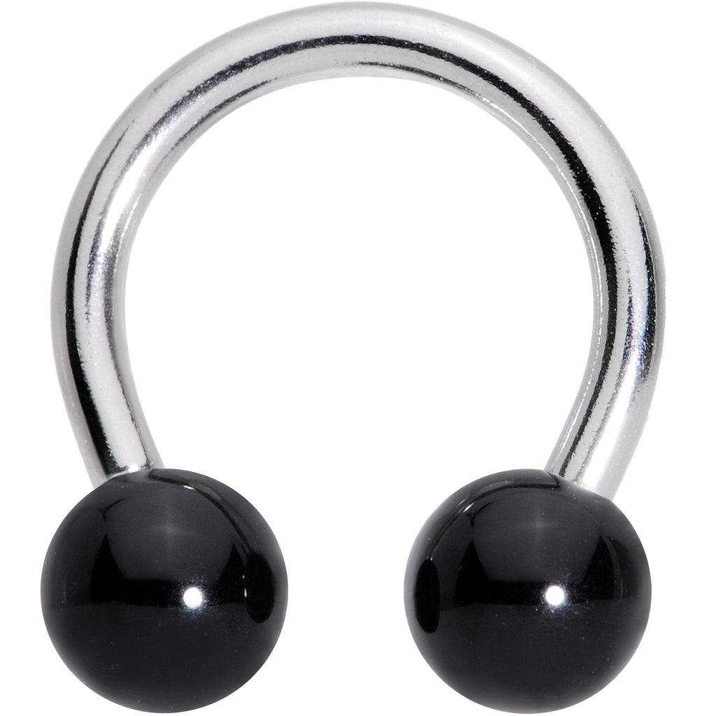 Hypoallergenic jewelry for sensitive skin.14 Gauge 3/8" Black Acrylic Ball Horseshoe Circular Barbell