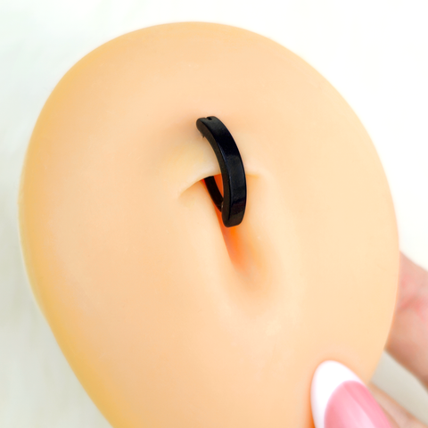 Get fashion forward with this 14 gauge navel ring. It is made with a 10mm black PVD over ASTM F-136 implant grade titanium hinged circular ring. It features a forward facing, simple design for a classic look of understated style. It also features a non-removable, hinged segment that makes insertion and removal a breeze. You can face the day looking simply gorgeous with this elegant belly piercing jewelry.Specifications