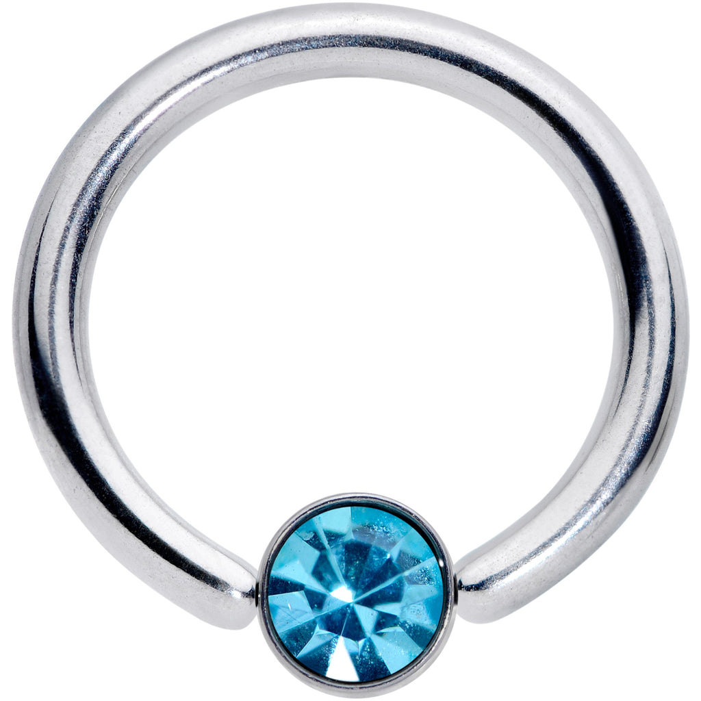 Every body jewelry wardrobe needs a few basic items that look great in multiple piercings. This 14 gauge ball closure ring is made with a 10mm durable 316L surgical grade stainless steel circular ring. It features a 4mm captive disc set with a blue gem inlay for a look that is simple and classic. This universal ring works well in multiple piercings including cartilage piercings like the helix, navel, septum, and some eyebrow piercings. Cover your basics in style with this multi-purpose captive earring!Specifications